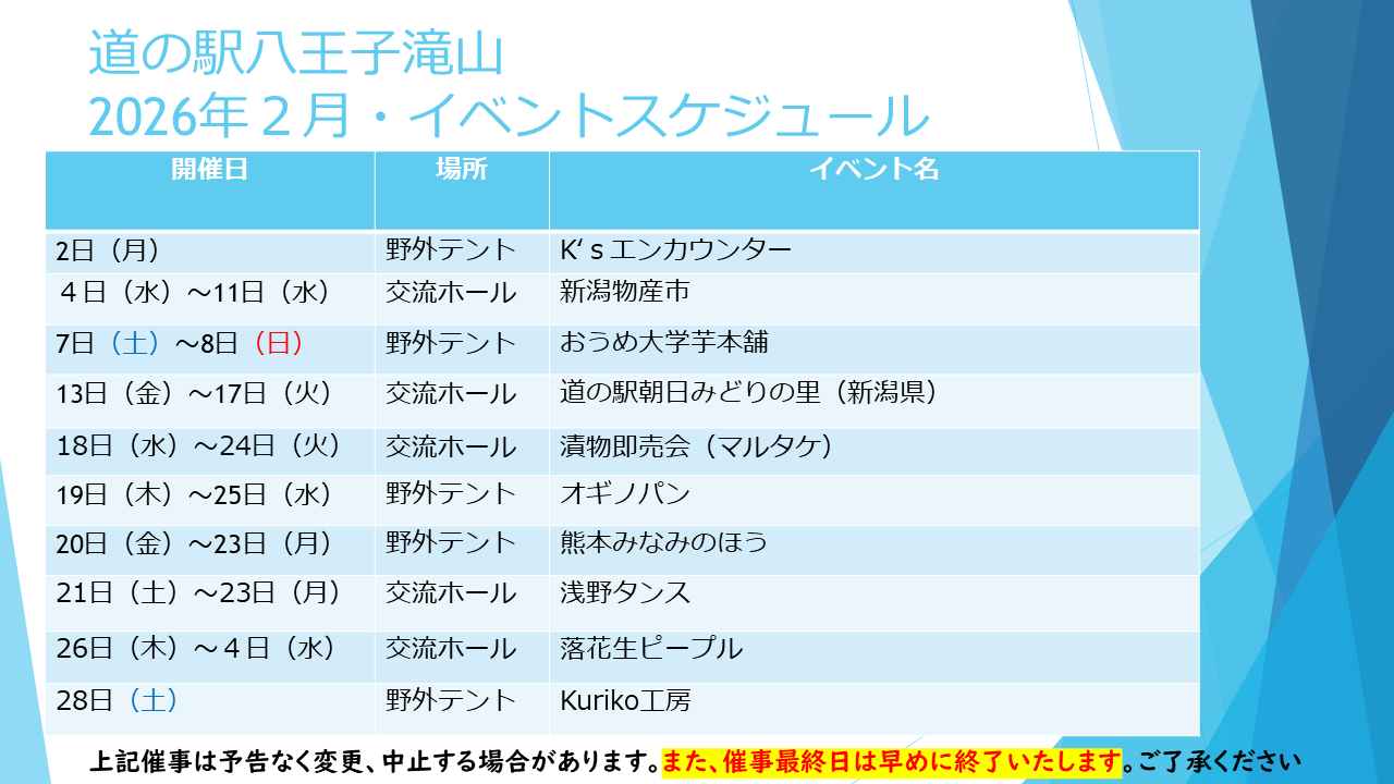 本年も道の駅八王子滝山をご利用いただき、誠にありがとうございました。